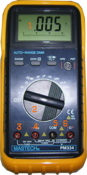 6 = V-Ohm Buchse. Buchse zur Spannungs- bzw.