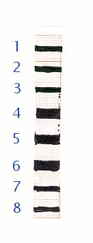 wenig erweitert:Autor Jan Mischnick (August 07) : Als mir heute langweilig wurde, ging ich in den Bastelkeller und fand dort Papas neue Bastelei: Die Reflexkoppler-Schaltung auf dem Steckbrett. Gerade eben saß ich vor dem Computer und habe mir eine Anleitung für einen Sicherheitsroboter aus LEGO angeschaut. Dieser funktionierte mit einem Code aus Strichen. Ich dachte: "Ob die olle LED das auch kann?!?" und holte mir ein Blatt Millimeterpapier und einen Stift. Ich zeichnete einige Striche und zog sie über den "Scanner": "Huch!" , dachte ich, als die LED aufleuchtete. Jedoch zeigte sie keine Veränderungen, als die Striche über den Reflexkoppler liefen. Ich probierte das mal mit meinem Finger und auch dann leuchtete die LED. Nun nahm ich die Zange (die SCHWARZ war) und hielt sie darüber. "Nanu!?!", sagte ich, denn die Leuchtdiode blieb dunkel. Jetzt holte ich mir mehr Stifte und probiere ein wenig herum: ![]()