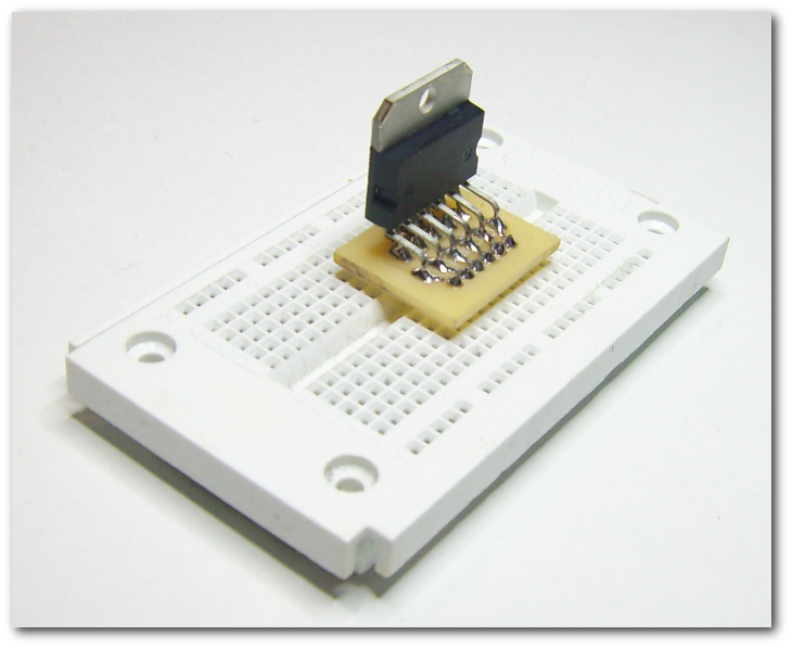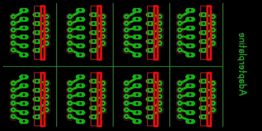 Lochrasterplatine passt. Ebensowenig passt er natürlich auf ein Steckbrett. Daher bin ich heute einmal dabei gegangen und habe ein paar Adapterplatinchen geroutet, die zu dem unmöglichen Maß der Füßchen passen: ![]() Natürlich habe ich dieses Layout auch als xxx.lay-Datei für SprintLayout 5.0 und höher parat: Download (L6203 Adapterplatine.lay) Nachdem ich das also geätzt, und