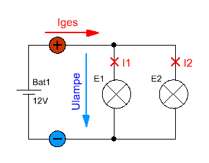 nehmen wir mal an, wir haben eine Batterie mit einer Lampe dran, einen