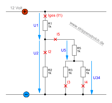 komplett beschriftete Schaltung sieht dann also aus: