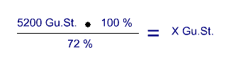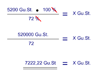 Welches Produktionsziel hatte der Chef gewünscht? Nun, das kannst Du Dir mit einer Verhältnisrechnung klarmachen: Dazu bildet man zwei Brüche und setzt sie gleich. Danach löst man die Gleichung nach X auf und erhält bereits den gesuchten Wert. Also: Die tatsächliche Produktionsmenge waren 5200 Gummistopfen. Diese setzen wir mit den 72 Prozent ins Verhältnis: Jetzt möchte man gern