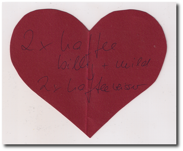 Zum einen könnt Ihr Euch an diesem Herzchen erfreuen, aber Ihr könnt Euch auch einmal von mir mathematisch "quälen" lassen: Aufgaben