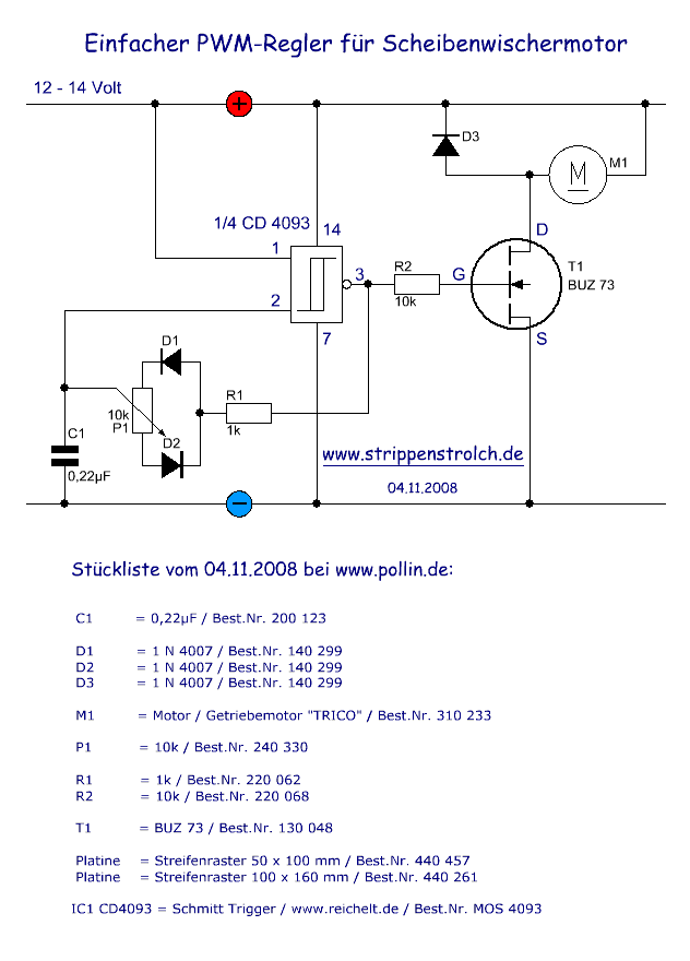 Zurück zum Menü 1 1.6.9 Einfacher PWM-Regler für Scheibenwischermotor. Erstellt: November 2008 |