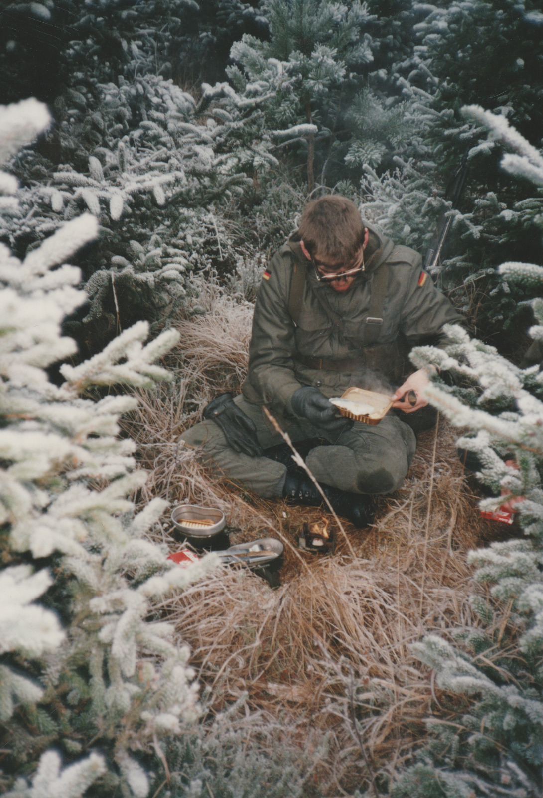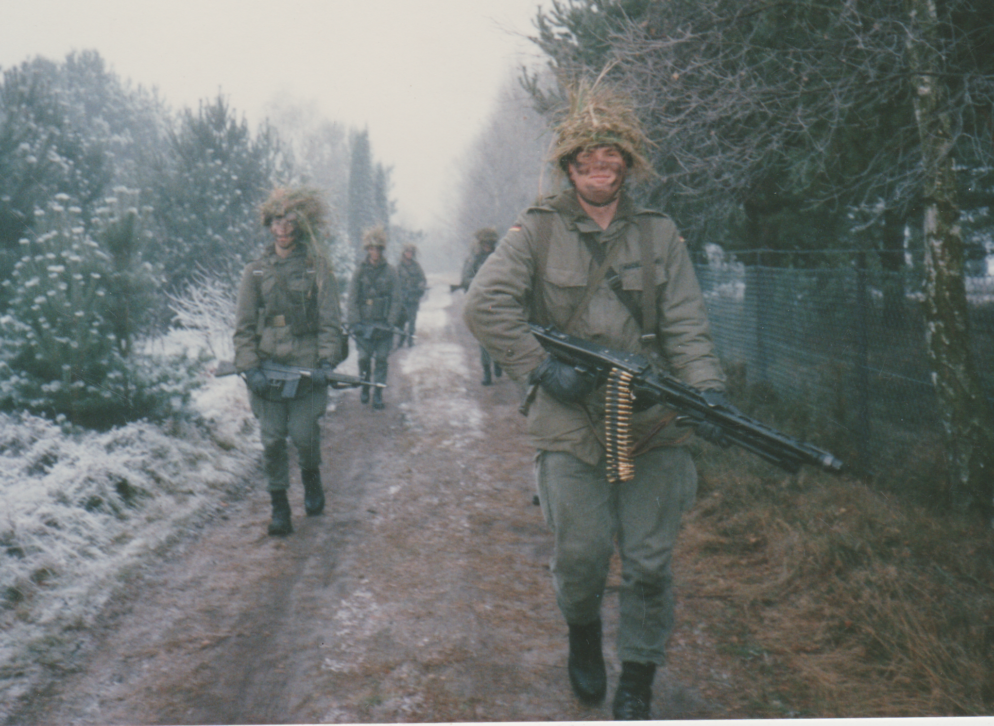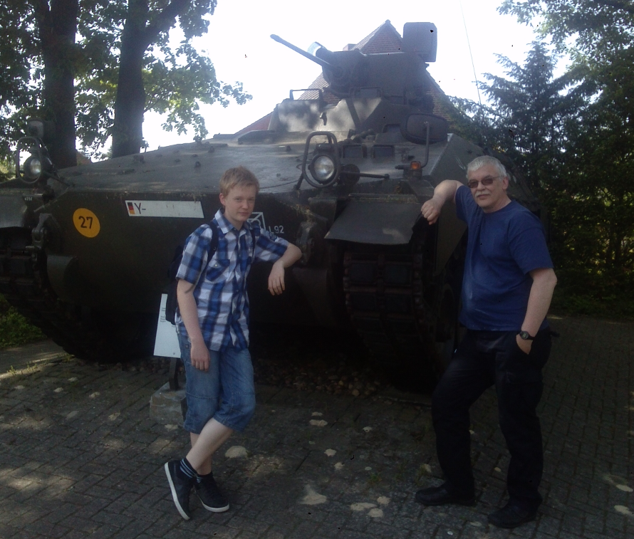 Ich musste meinen Dienst bei der Bundeswehr antreten. Ich habe später eine Grafik entworfen, die meine Dienstzeit bei der Bundeswehr symbolisieren soll: ![]() Viel später konnte ich meinen Söhnen Nico und Jan noch einmal sehr verdeutlichen, was DAS bedeutet hätte, wäre die "deutschte Mauer" nicht gefallen. Ich konnte ihnen ohne Worte klar machen, dass die beiden dann wohl nicht geboren worden wären. Wir besuchten das deutsche Panzermuseum in Munster: ![]() Foto (c) Ernst S. --- Nico und ich im Panzermuseum Munster (Niedersachsen) vor meinem "Arbeits-Gerät", wie wir es damals nennen mussten. (Schützenpanzer Marder, Rheinmetall, Unterlüß, eines der Waffensysteme des deutschen Heeres zu Zeiten des Mauerfalls in 1988 / 1989.) Zitat meines Sohnes Nico: "Oha, die sind aber alt". Gefolgt von langem Nachdenken ... Dieses Waffensystem wurde in 1988 durch unseren damaligen Standort-Pastor gesegnet, damit es für immer schweigen möge. Der Pastor wurde damals "von ihm da ganz oben" erhört. Zum Mauerfall war kein einziger Schuss aus der BmK, dem MG3, dem G3, der "Uzzi", der Panzerfaust, der P1 oder der Milan nötig. Wir brauchten keine "spanischen Reiter" oder fiese Leuchtfallen bauen. Auch unsere Minenlegepanzer blieben völlig unbenutzt. Ebenso wie unser flacher Jagdpanzer und der "Luchs" und der "Fuchs" und der "Leo". All diesen "Krempel" hatten wir reichlich zur Verfügung und das Zeugs war auch bereits scharf gemacht. Das hätte in der Lüneburger Heide ein Gemetzel sondergleichen gegeben, bis die Amerikaner mit ihrer Air Force hier gewesen wären. Aber die Mauer ist weg ! Ohne Gewalt ! Montag für Montag von den Bürgern "zerbröselt". Lieben Dank Euch allen. :-) Ein paar Impressionen: ![]() Essen aus einem "EPA" (Ein-Mann-Paket) in einer winterlichen Gefechtspause. ![]() Stube 7: --- 9 Mann (ohne Ausbilder) vor dem 25-Kilometer-Marsch. ![]() Stube 7: --- 8 Mann (mit Ausbilder) nach dem 25-Kilometer-Marsch ----------------------------------------------------- ![]() Frage an die neuen Rekruten bei der Bundeswehr: "Wo ist der zehnte Mann geblieben ?" Antwort sofort ! Tipp (für die, die nie gedient haben): Das Foto beweist es eindeutig. Bitte genau nachschauen ! ----------------------------------------------------- Soviel mir bekannt ist, fiel beim deutsch-deutschen Mauerfall kein einziger scharfer Schuss. ![]() Ausbildung: "Schützenreihe in unklarem Gelände im Gefecht" Aber der Stress war unglaublich hoch. ![]() Ausbildung: "Gefechtsmäßiges Biwak im Winter im Wald" An alle, die jetzt wieder zu ihrem "Ballerspiel" greifen wollen: Ich kann dazu nur sagen: "Lasst das Zeugs sein." Außer medialer Abhängigkeit (Media-Sucht) bringt Euch das absolut nichts ein. Mein Vater sagte damals stets zu mir, wenn ich mit solcherlei Dingen hantierte: Zitat aus den 1980er Jahren: "Junge ! Nimm die Finger von dem Ding, der liebe Gott kann machen, dass da Feuer raus springt !" Zitat Ende Mein Tipp: Versuche doch mal, etwas in dieser Richtung auf die Beine zu stellen: Ich danke für die Aufmerksamkeit. Schön, dass Ihr alle noch lebt ! ![]() ![]() |
