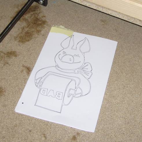 Dann habe ich fix eine Vorlage gesucht, um etwas zu plotten und bin auf ein Schwein mit Klopapierrolle in den Händen gestossen. Das Ergebnis kann sich
