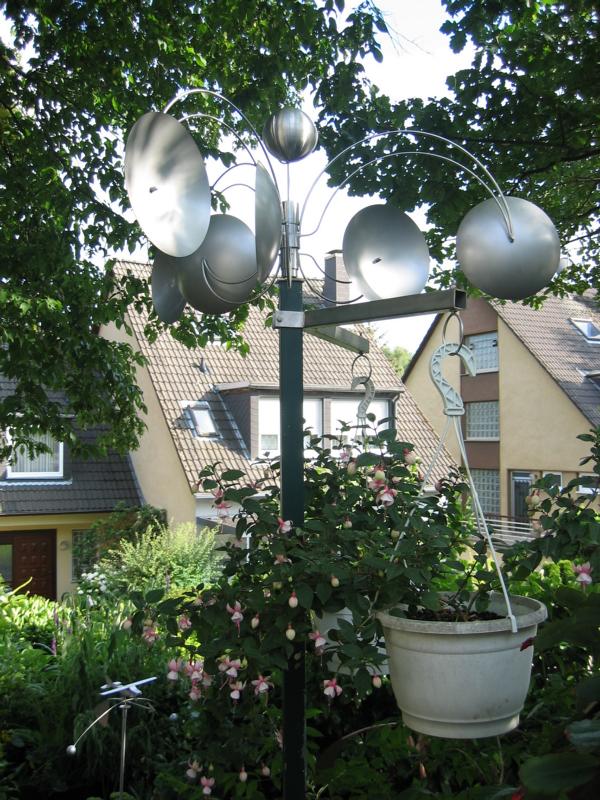 Die Idee zu diesem Windspiel entstand im letzten Jahr, als ich Halbschalen aus Edelstahl bei Ebay entdeckte. Diese