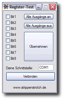 Zurück zum Menü 5 5.3.3 RS 232 Parallel-Interface A Die Benutzung eines Schieberegisters Erstellt ab: 11.04.2010 |