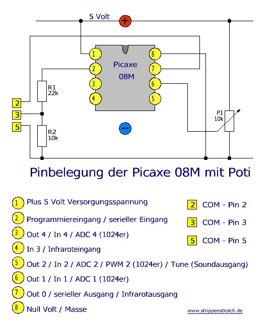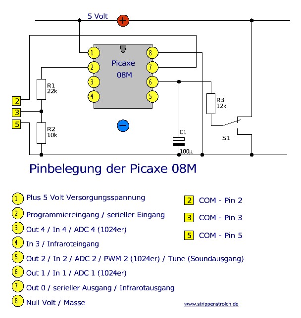 ![]() ACHTUNG ! Da es die Picaxe 08M bereits