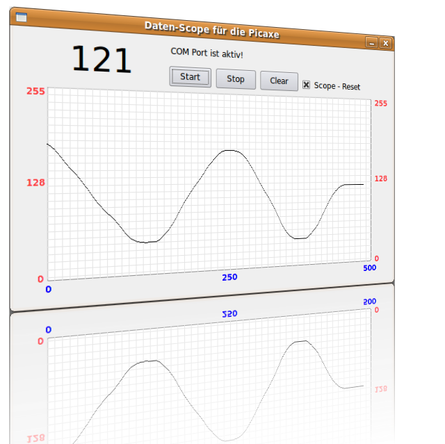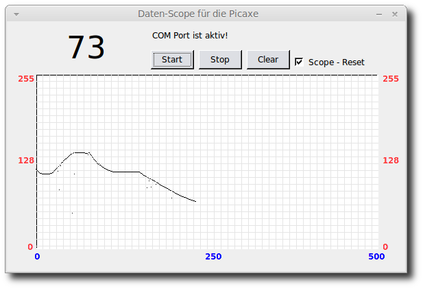 "Oszilloskop" für die Picaxe, mit dem ich dann die gesendeten