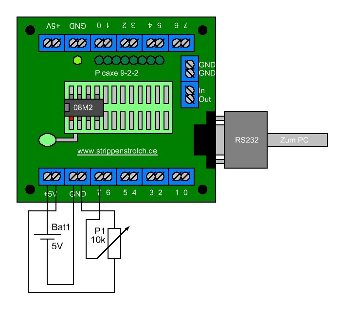 Auch der Schaltplan hat sich ein wenig geändert, um ein Picaxe-Lernboard verwenden zu können: