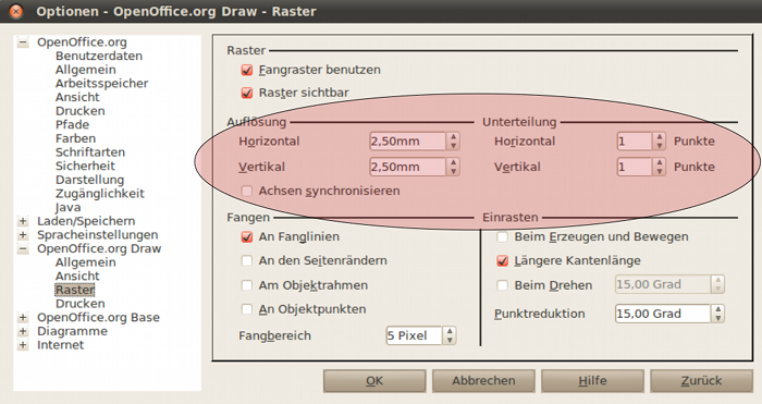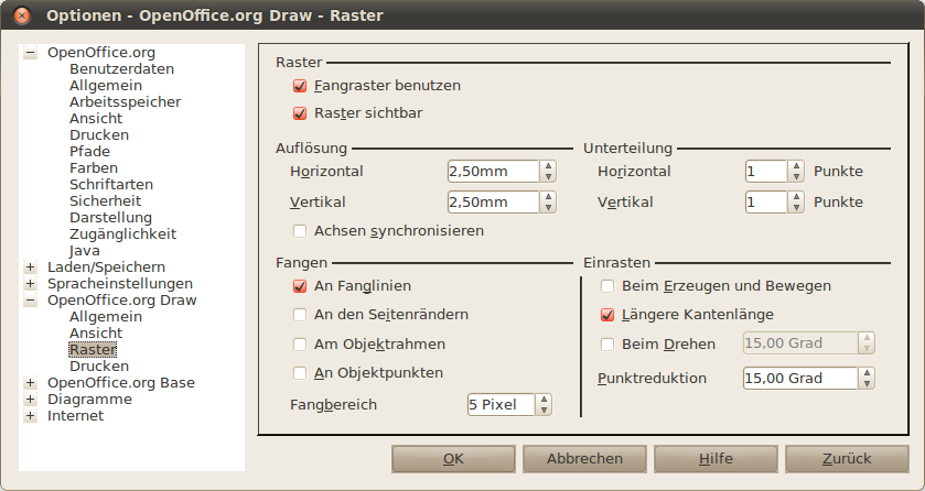 den Punkt "OpenOffice.org Draw" und dort dann auf "Raster" und erhalten