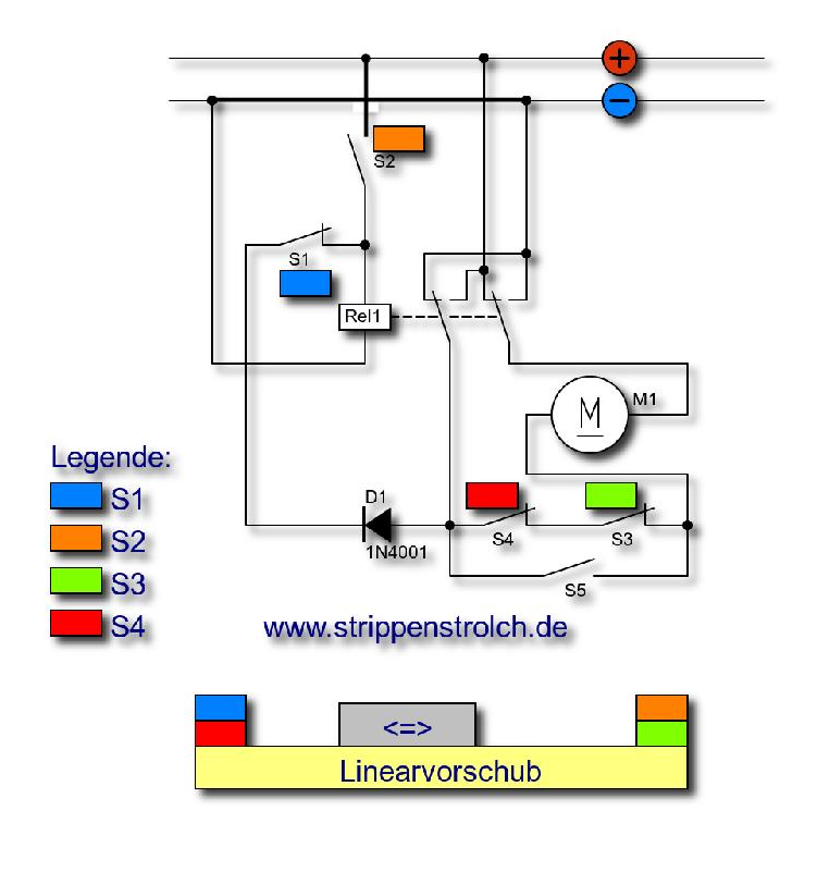 ![]() Also Quasi für die SPS-Kundler: (S3 AND S4) OR S5 = Motor EIN (NOT S3 OR NOT S4) AND NOT S5 = MOTOR AUS Hier das Schaltbild: ![]() Viel Vergnügen mit mechanischen Elementen, ![]() Nach oben