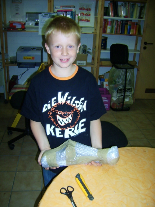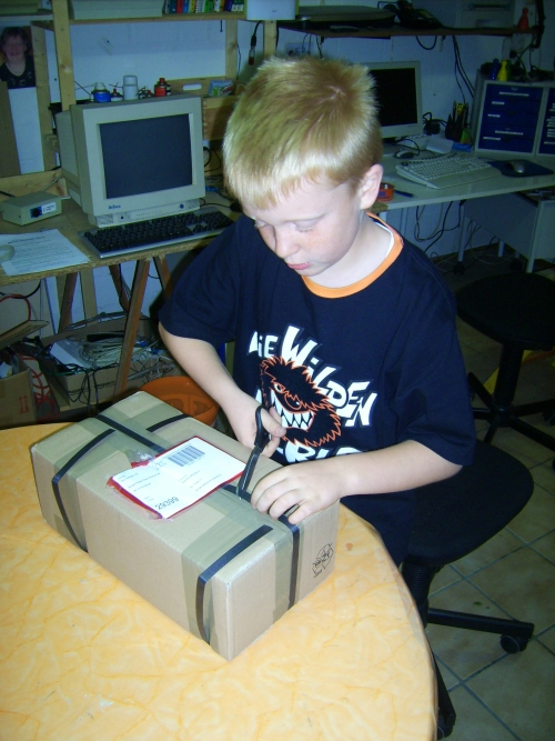 "Hmmm," scherzte ich, "Vielleicht eine ägyptische Mumie ?" "Da musst Du wohl mal die Folie ganz vorsichtig abfummeln..." ![]() "Ahaa, sieht intertessant aus, was ist das ?", sagte Nico. ![]() Ich erklärte