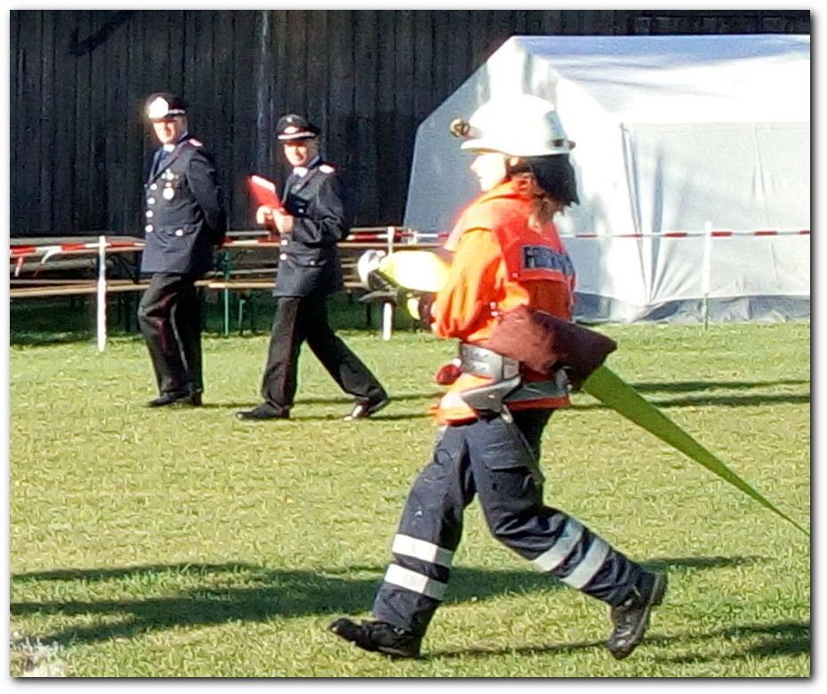 (Hier übt die neue Gruppenführerin die Einsatzbefehle für den Ernstfall mit dem nötigen Nachdruck zu formulieren. Das ist gar nicht so einfach und muss ebenso geübt werden.)